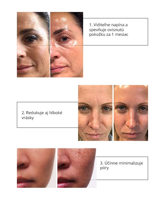 Mladší vzhľad = až 70% redukcia vrások Odstráni opuchnutie a zmiznú aj tmavé kruhy pod očami